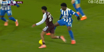 第78分钟,盖桑头球被扑,马伦刚上场就补射入网!布莱顿2-4维拉