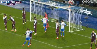 第37分钟,马特森横扫门前,沃特金斯包抄打进扳回一球!布莱顿2-1维拉